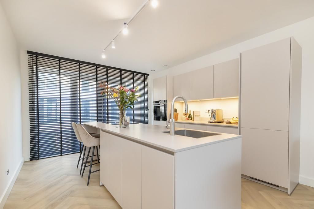 Bij binnenkomst stap je in een ruime hal met toegang tot een separaat toilet, het woongedeelte en de slaapkamers. De lichte woonkamer met grote raampartijen is voorzien van stijlvolle schuifdeuren die uitkomen op een royaal balkon. De open keuken...