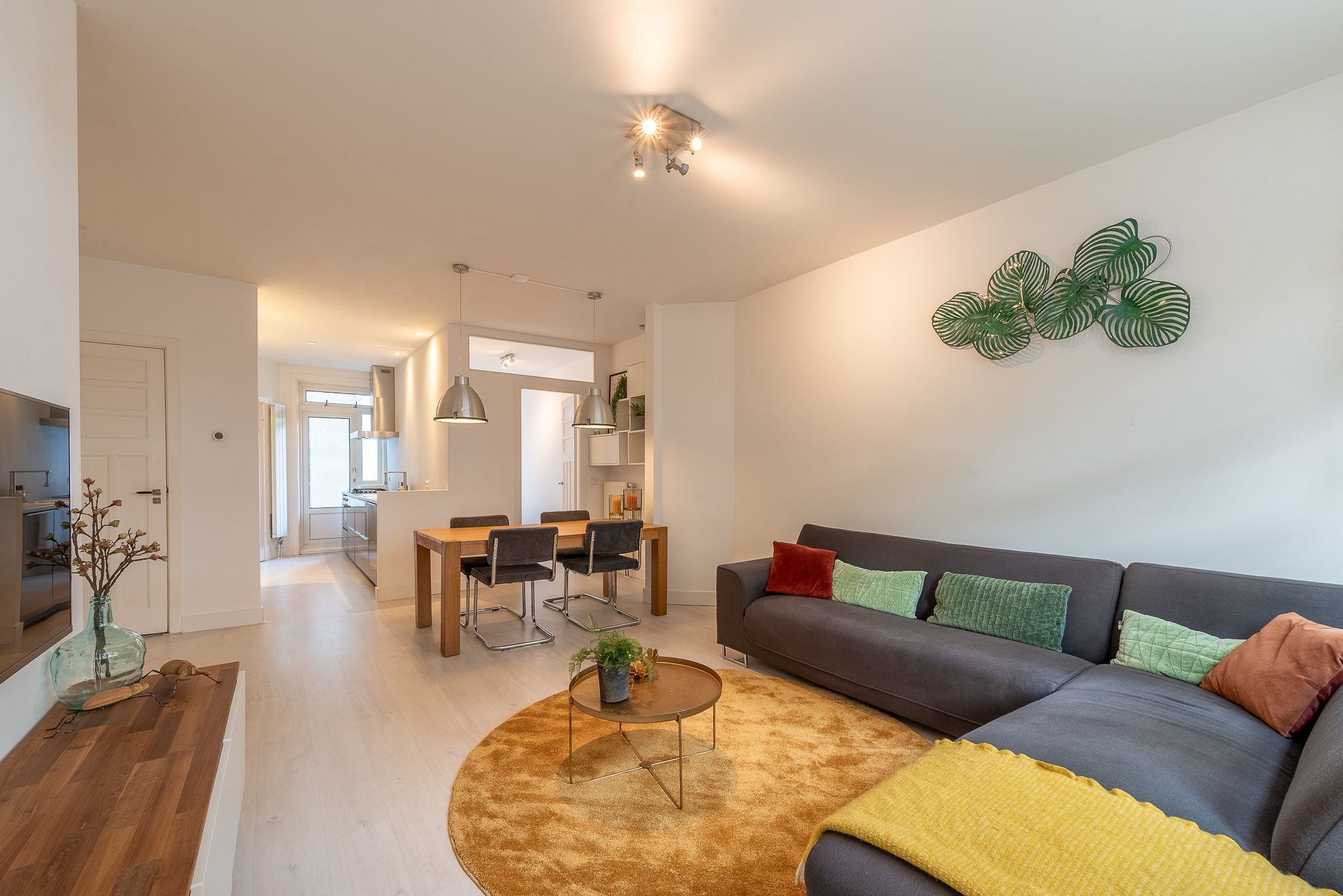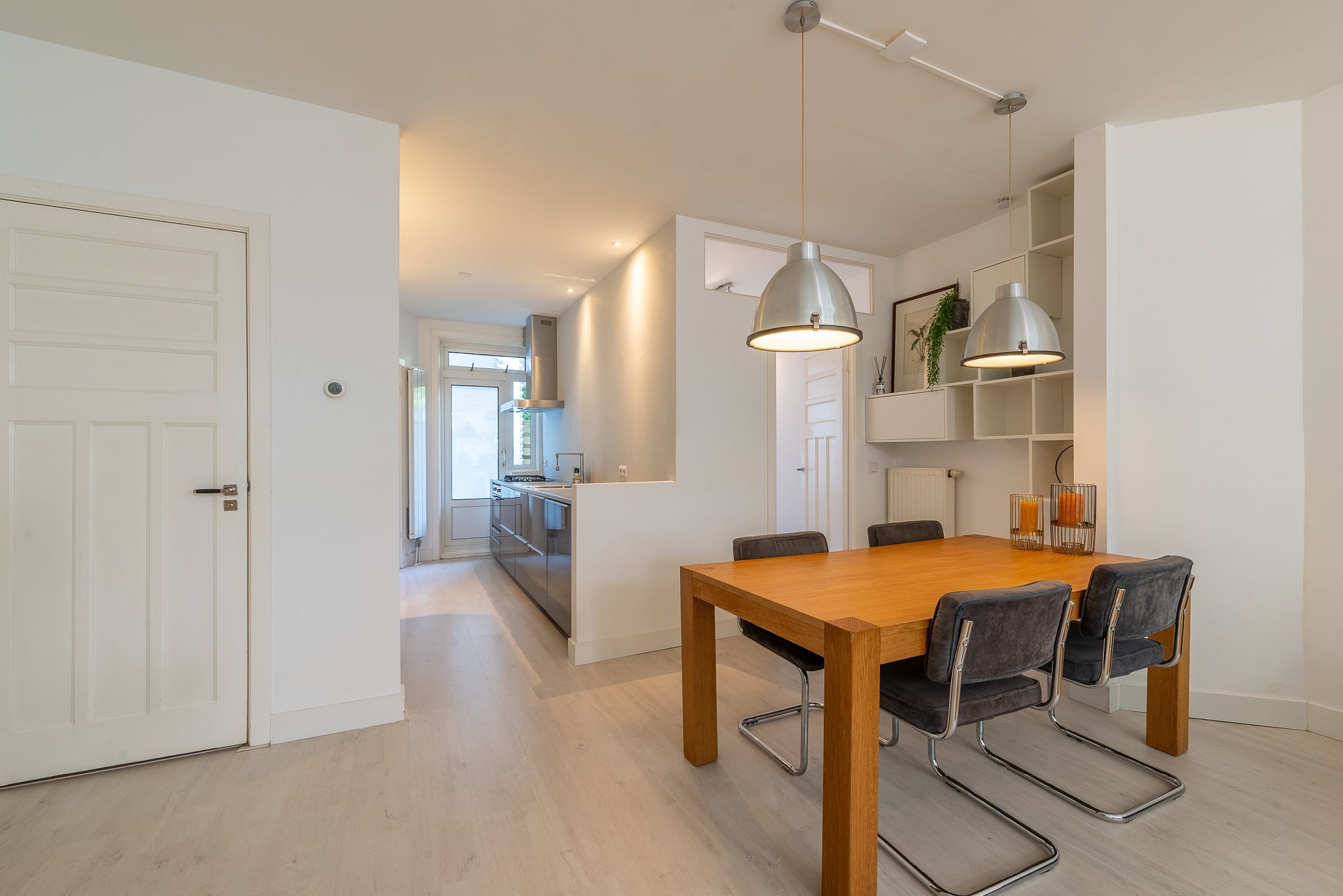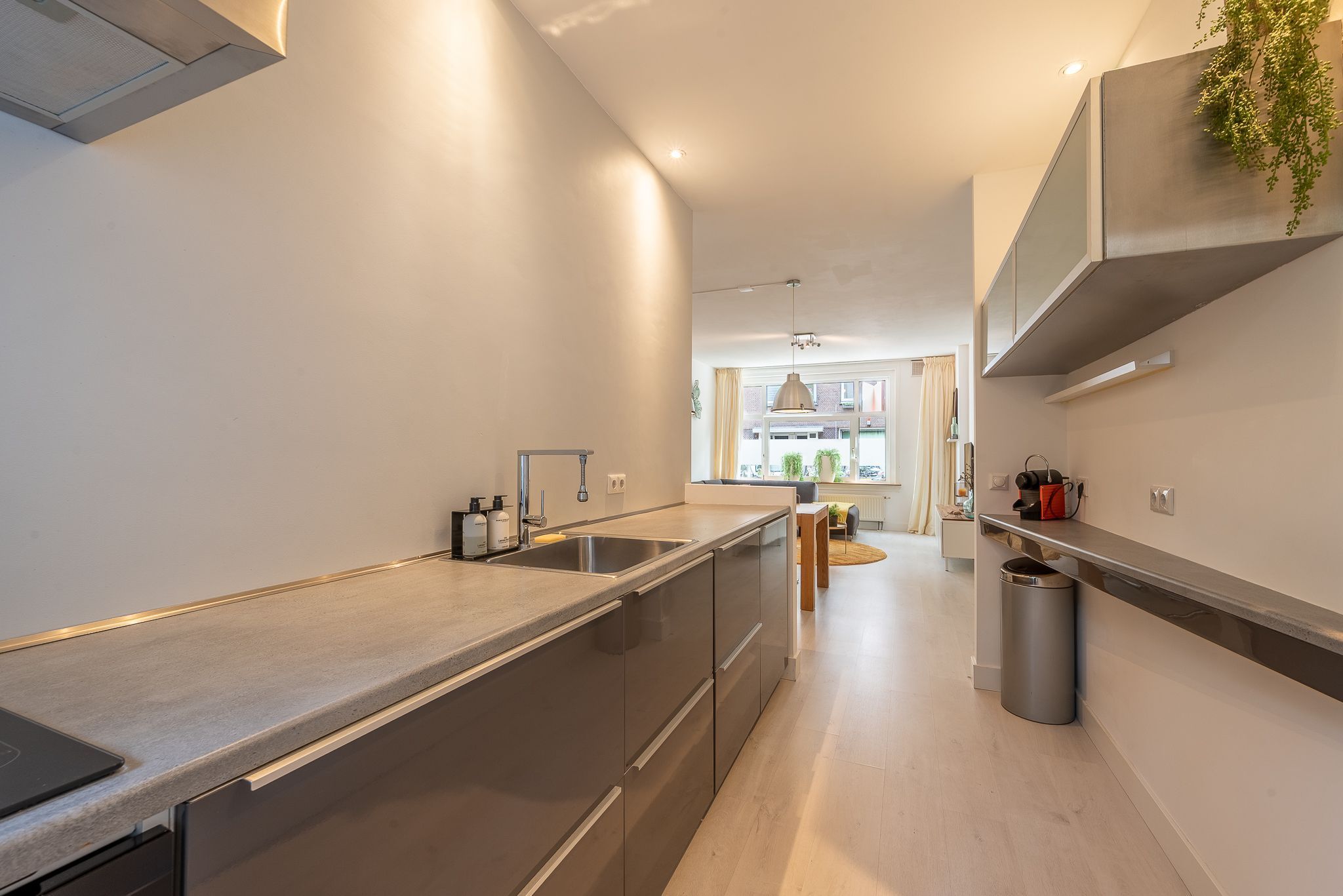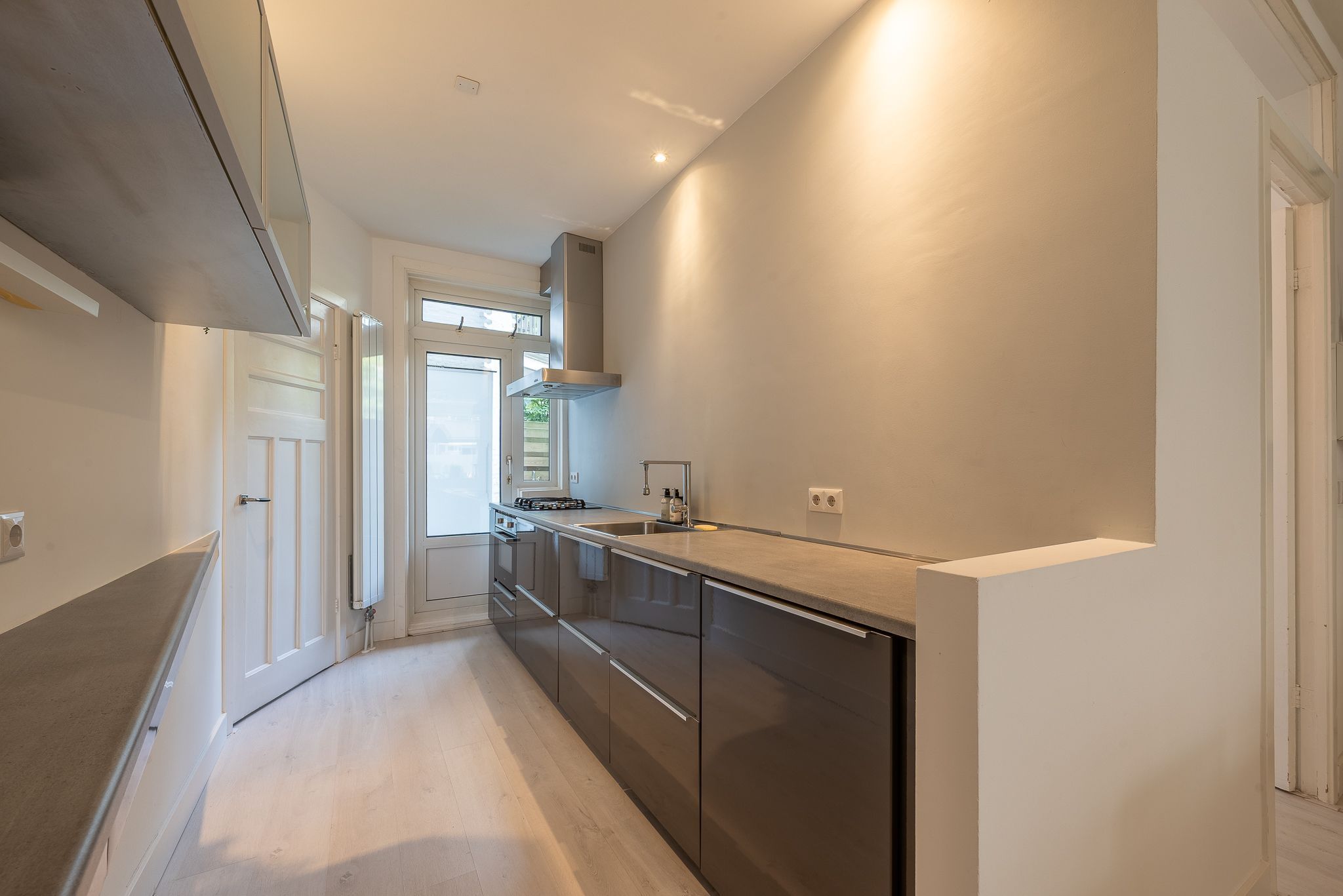 Slim ingedeeld en praktisch in gebruik. De woning is in 2015 volledig verbouwd en voelt direct als thuiskomen. Via de hal stap je binnen in de lichte woonkamer met open keuken. De moderne keuken is voorzien van inbouwapparatuur, een 4-pits gasfornuis, vaatwasser en een koelkast. Beide slaapkamers liggen rustig aan de achterzijde. De keuken en beide slaapkamers bieden via openslaande deuren direct toegang tot de tuin. In één van de slaapkamers is een aansluiting voor de wasmachine aanwezig. De moderne badkamer...