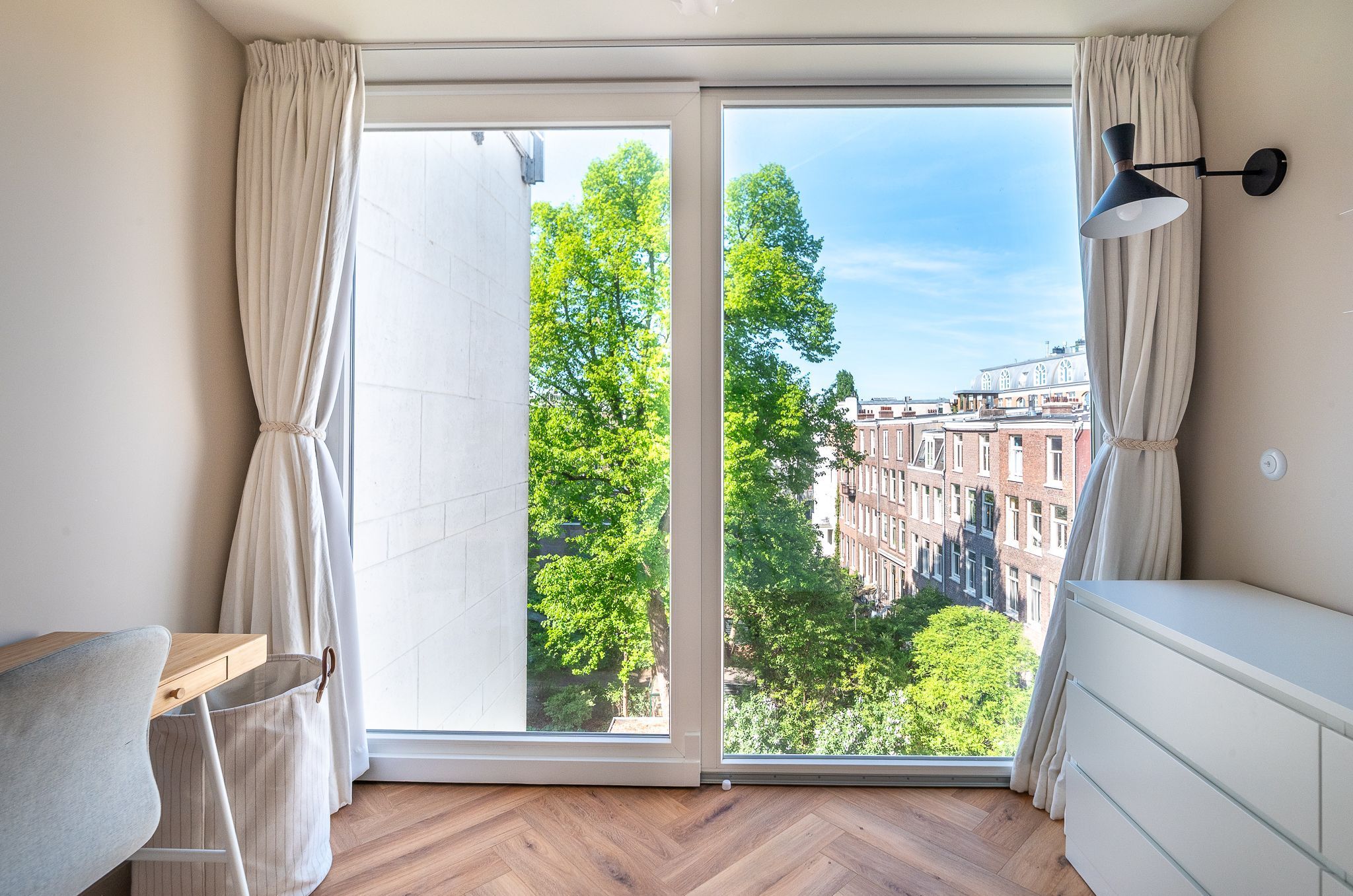 Wakker worden met uitzicht op de grachten, koken in een stijlvolle woonkeuken met kookeiland en ontspannen in een luxe badkamer met vrijstaand bad. Welkom in dit schitterend gerenoveerde appartement aan de Nicolaas Witsenkade 33-3 een unieke mix van historie, design en wooncomfort, gelegen op de derde verdieping van een klassiek Amsterdams pand.