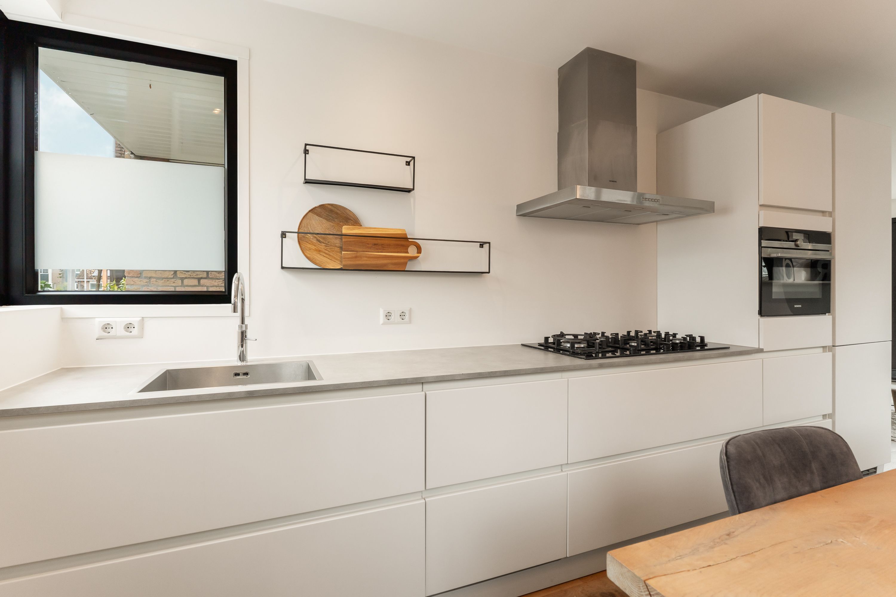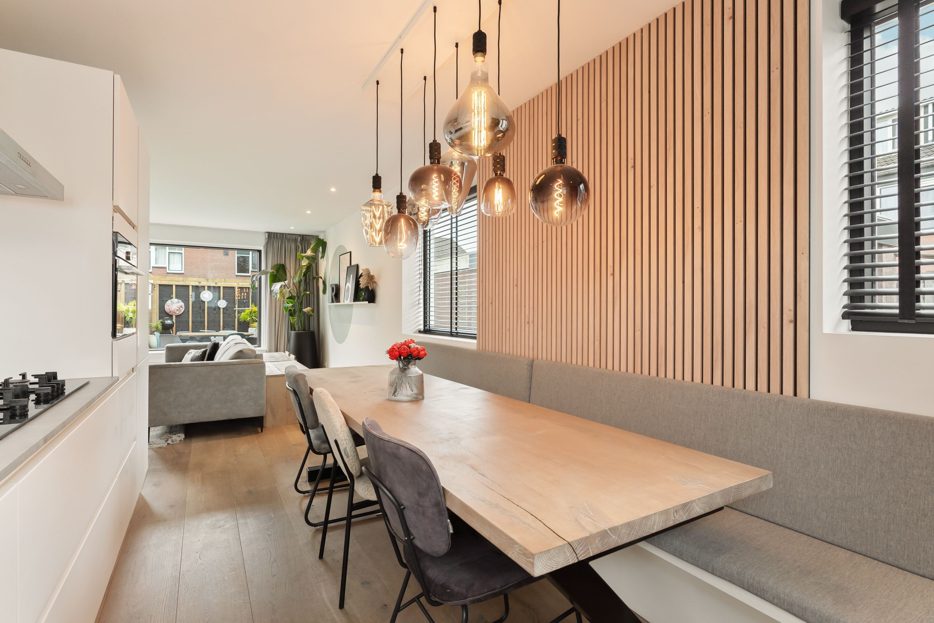 De begane grond is licht en open, met een gezellige woonkamer, open keuken en een sfeervolle gashaard als warm middelpunt. Via de woonkamer stap je zo de onderhoudsvriendelijke tuin in, compleet met berging en achterom, perfect voor lange zomerdagen of een rustige ochtendkoffie.