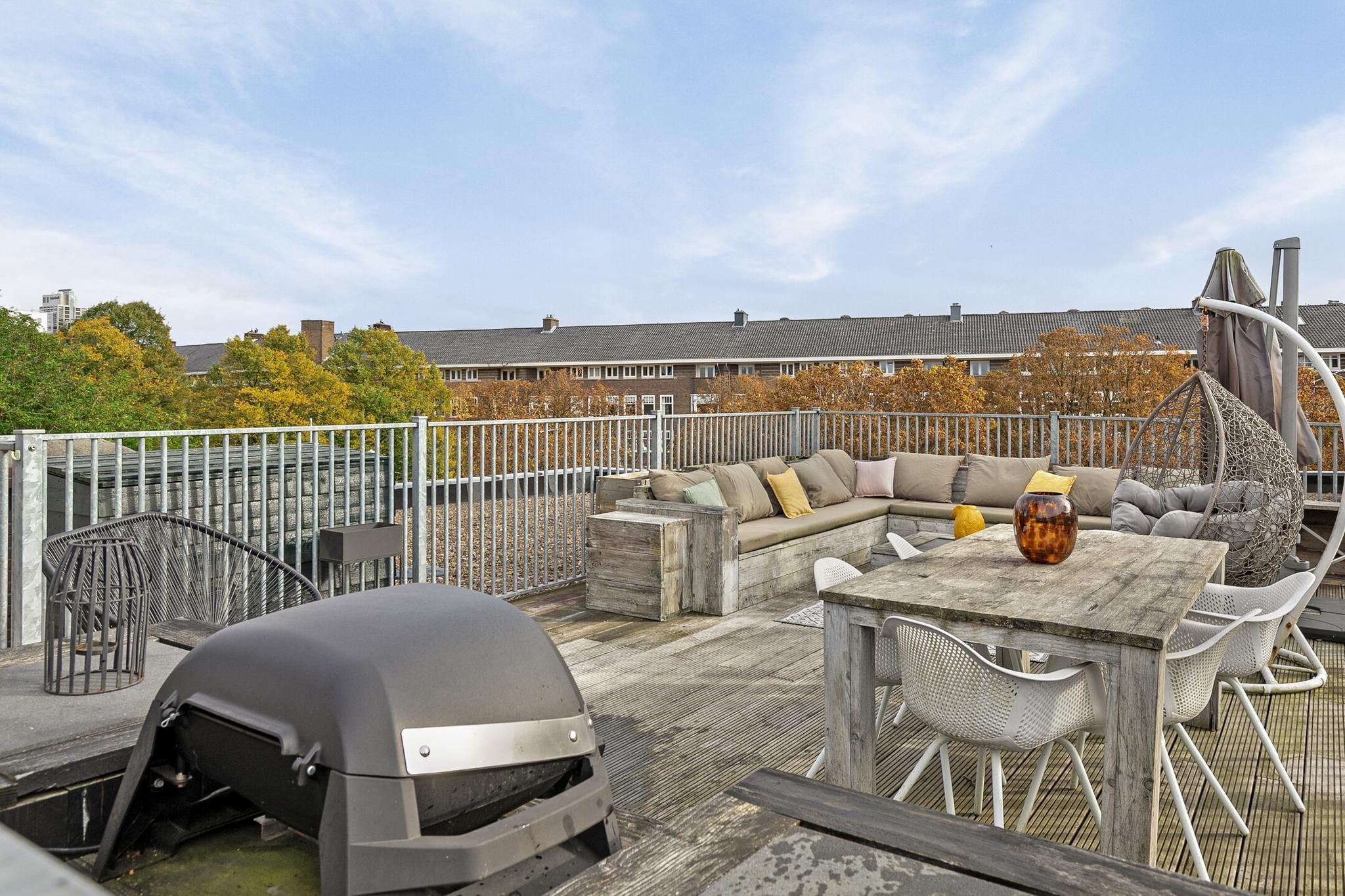 Kenmerken van de woning Deze stijlvolle bovenwoning op de tweede verdieping is direct klaar voor bewoning: eigen entree, een ruime en luxe woonkeuken, drie royale slaapkamers, een zonnig balkon op het westen, en dat indrukwekkende dakterras. Koffers inpakken en verhuizen maar!